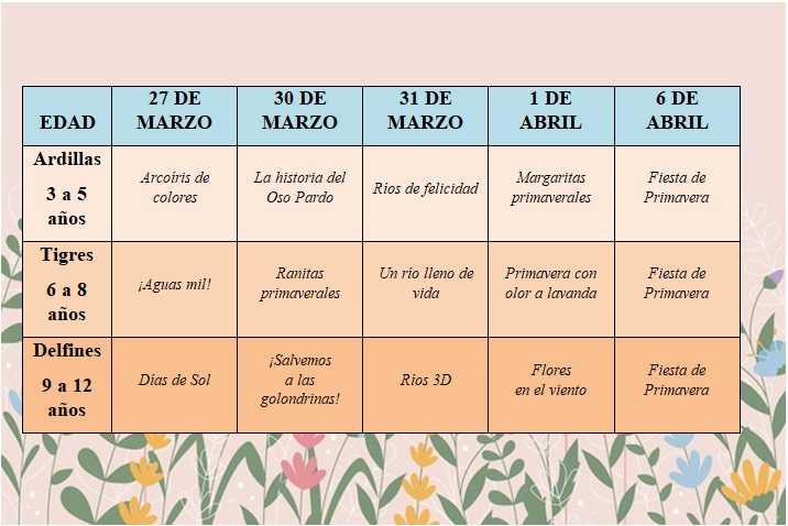 • El horario de las actividades será de 11:00 a 13:00